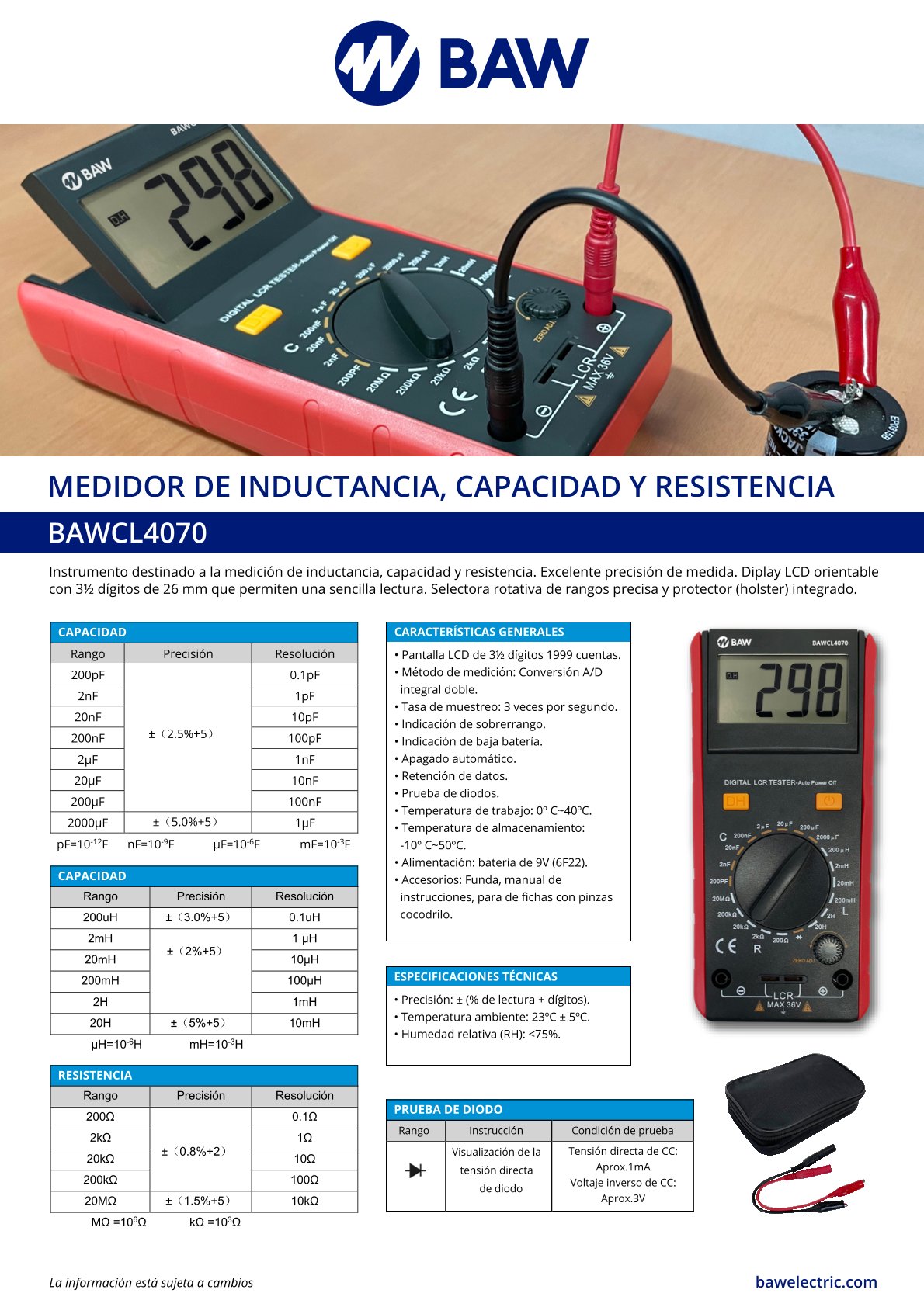BAWCL4070 Medidor de inductancia