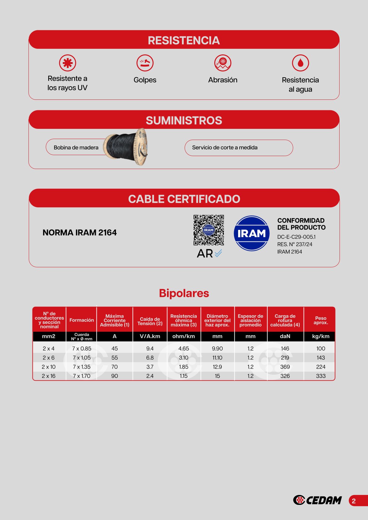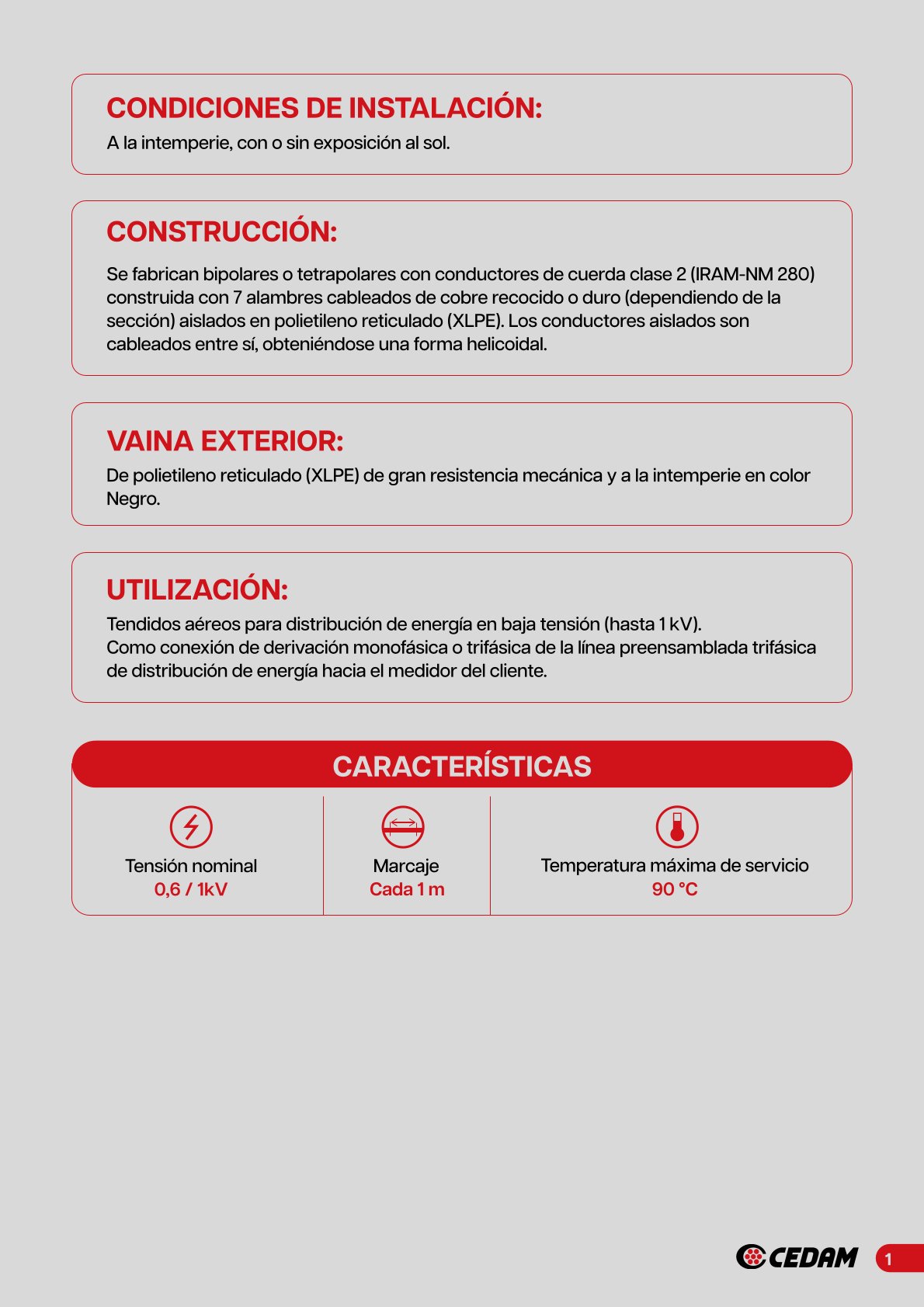 Cable preensamblado acometida de cobre CEDAM